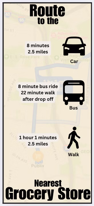 The nearest grocery store is just over two miles away, but with residents of this community without access to a car, the travel can be taxing.